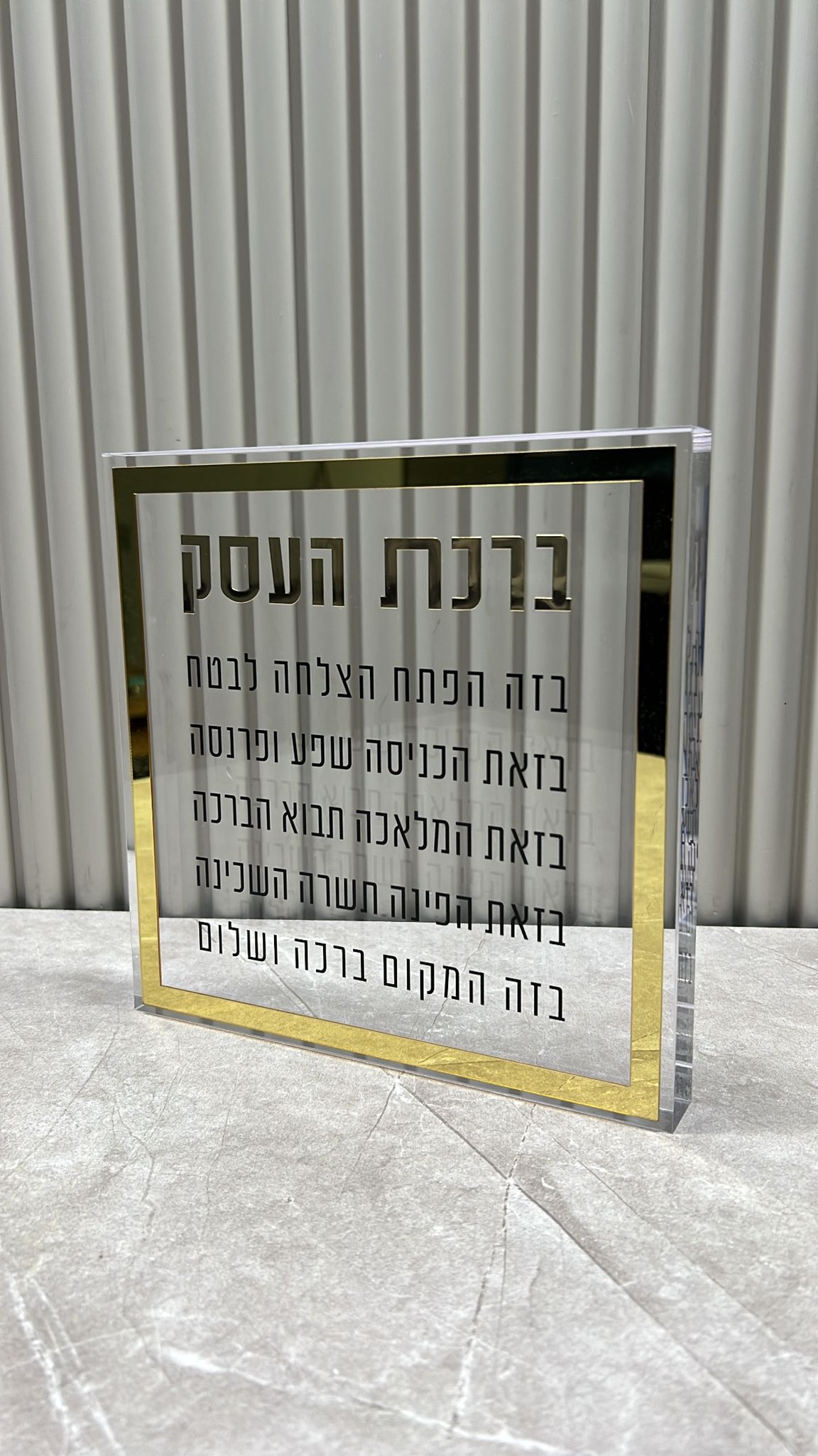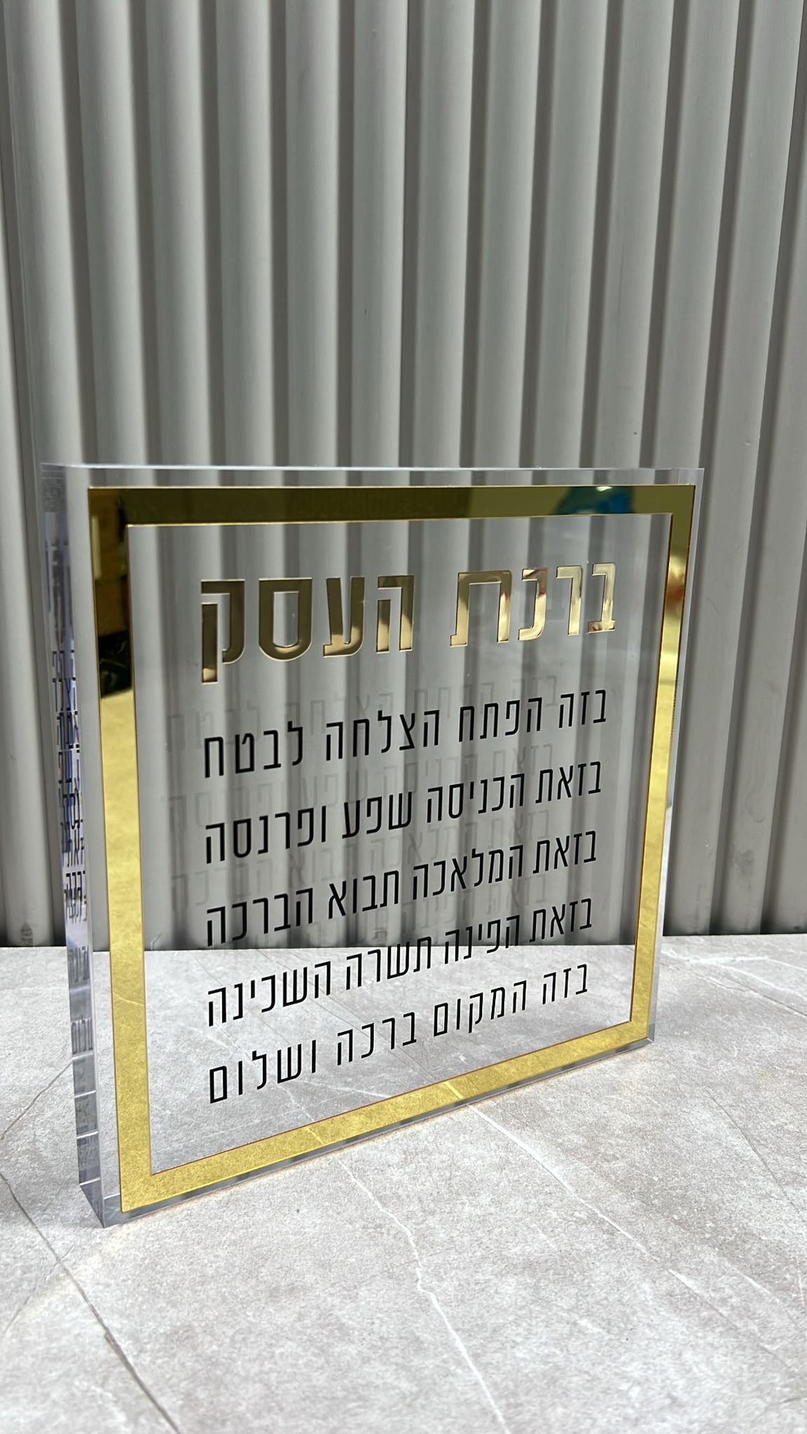ברכת העסק בלוק פרספקס זהב