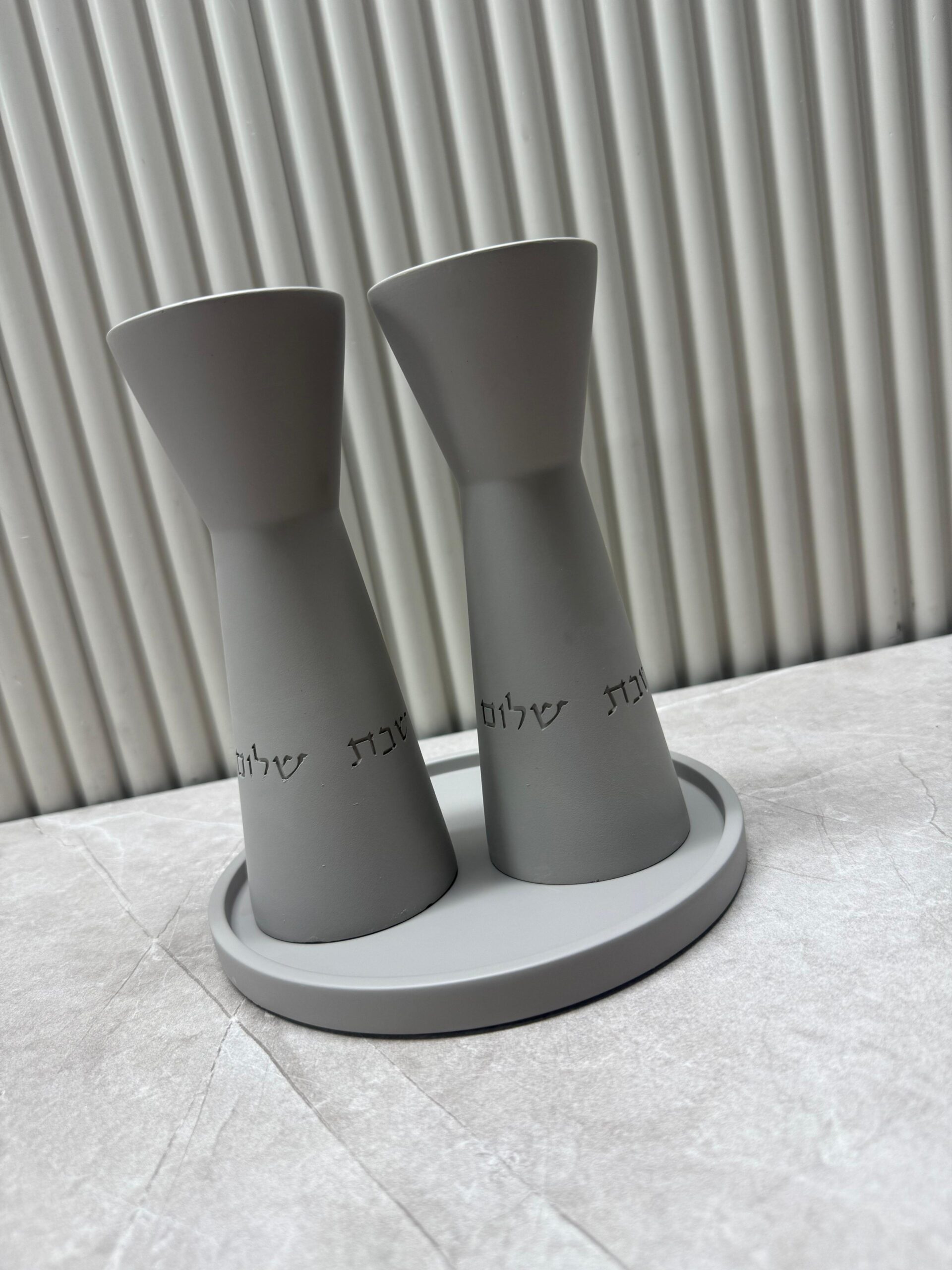 זוג פמוטי בטון גבוהים ומגש | אפור