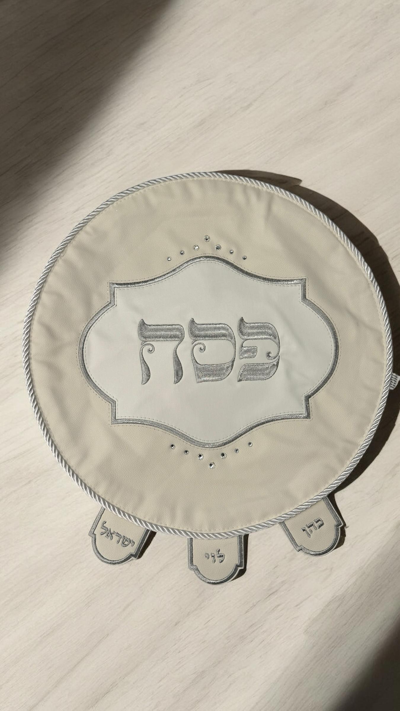 כיסוי פסח מהודר דמוי עור עם רקמה בגוון כסוף עדין