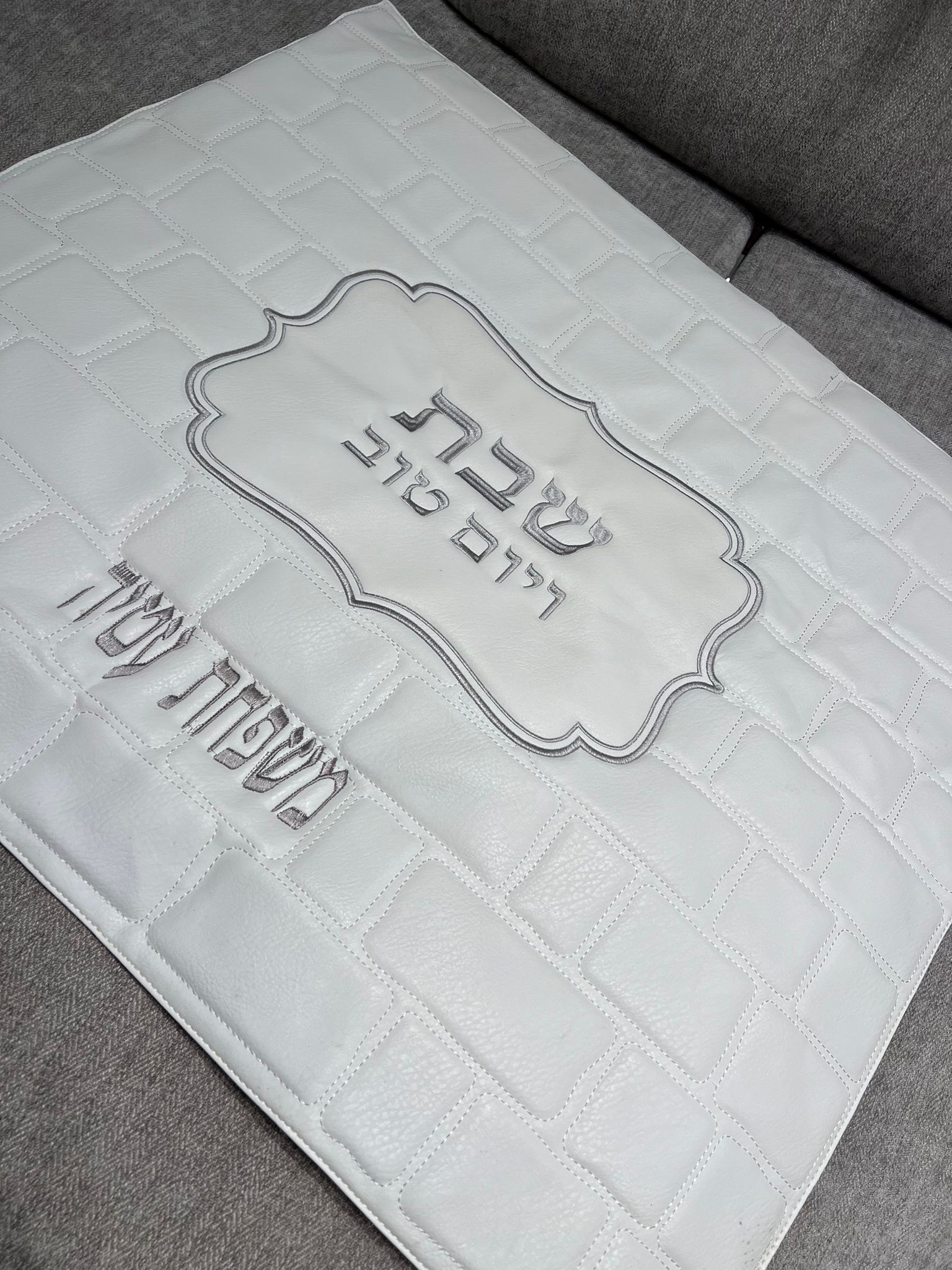 כיסוי פלטה לבן כולל רקמת שם
