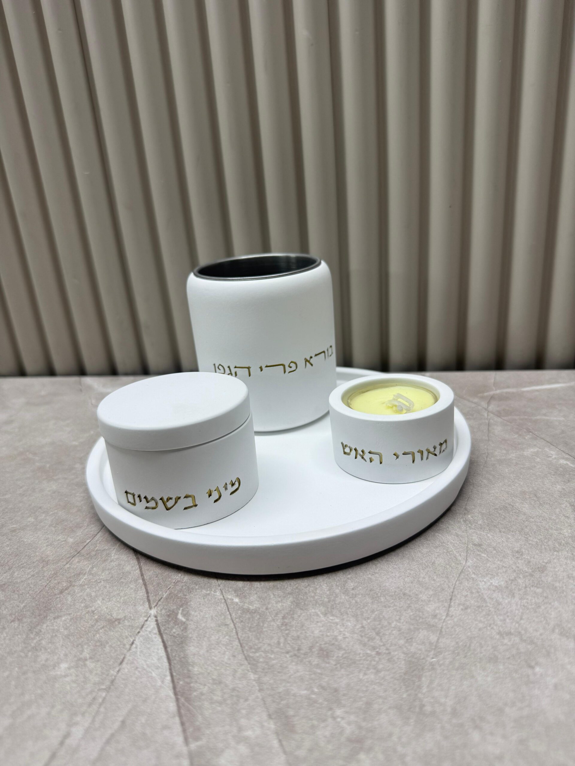 סט הבדלה עגול בטון | לבן זהב