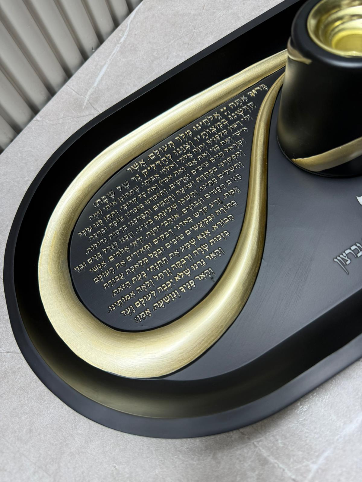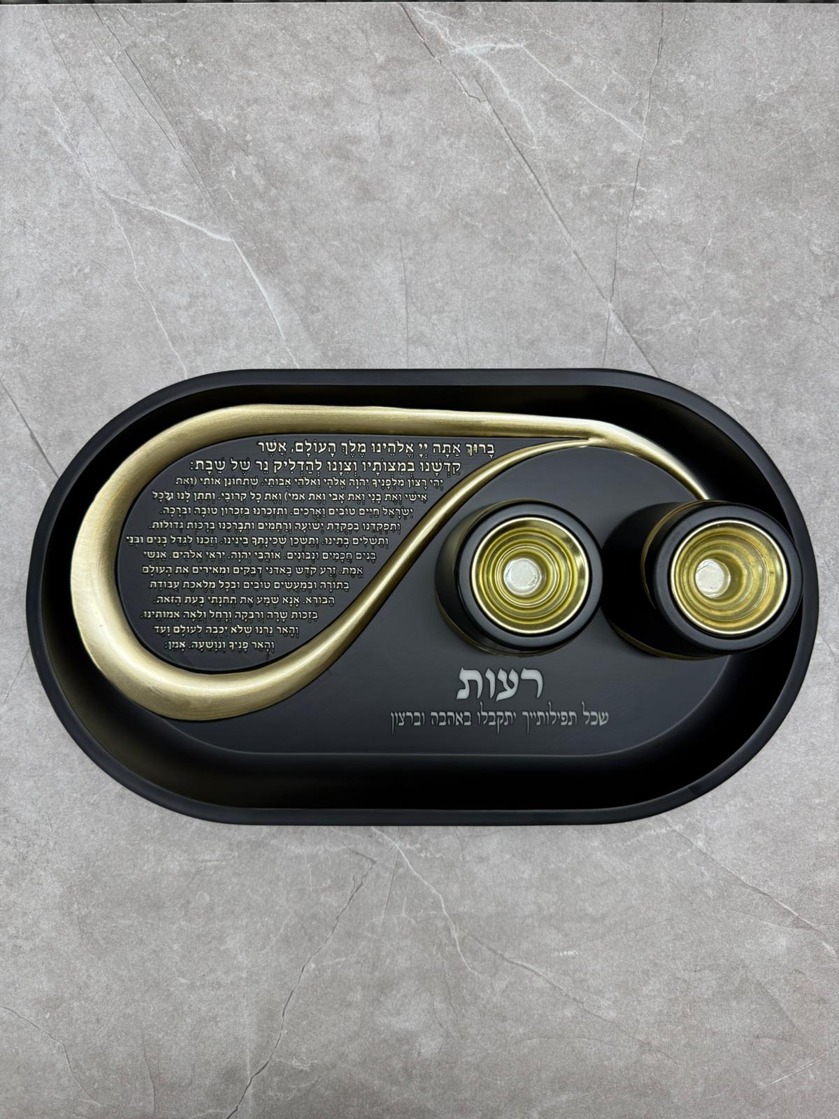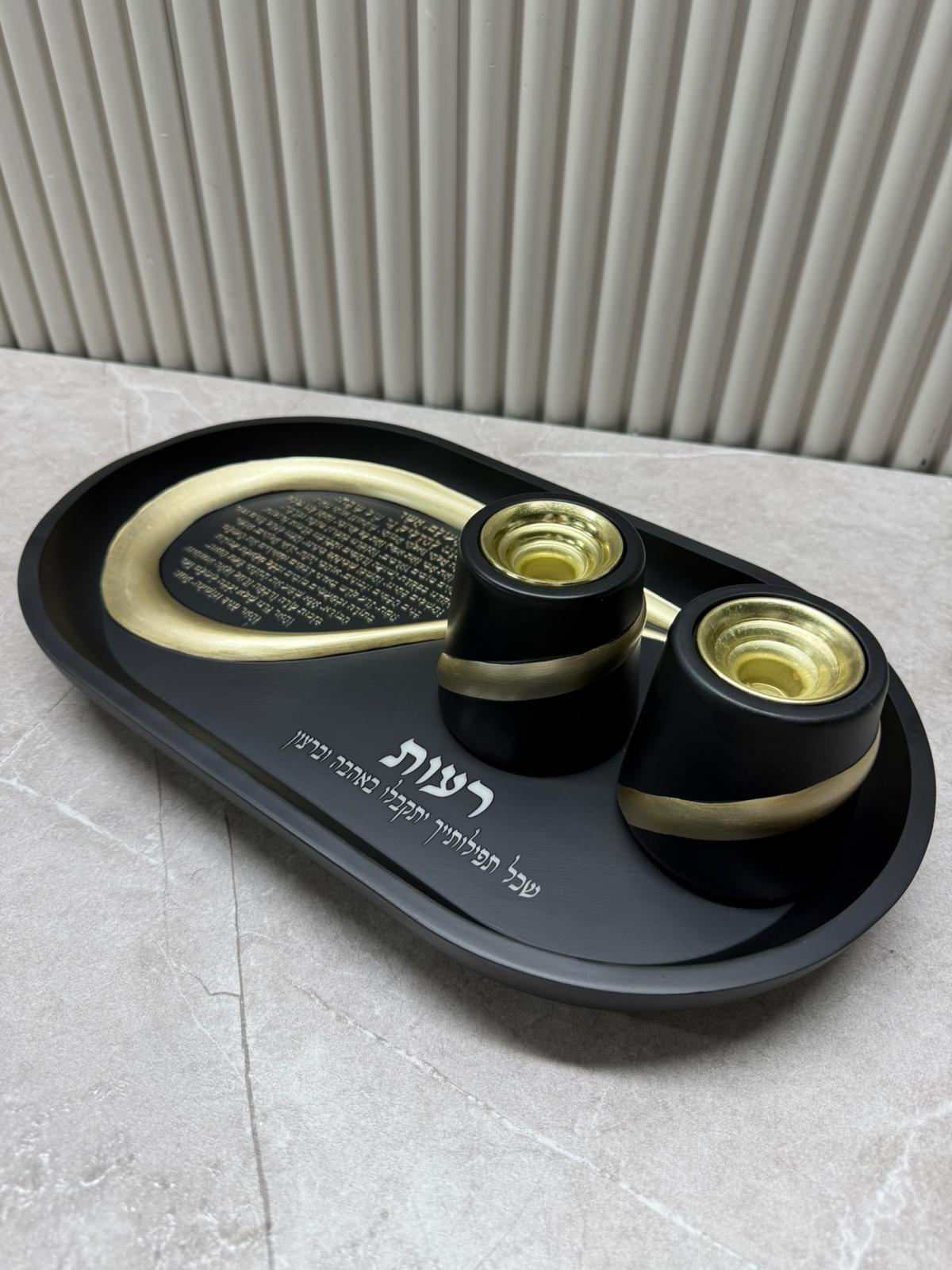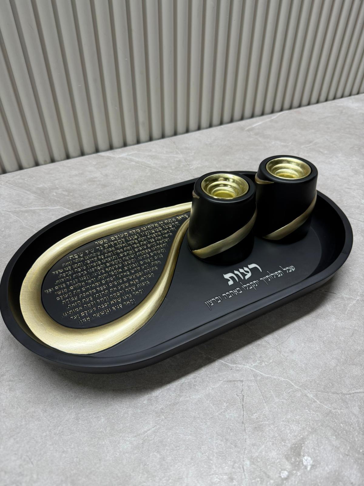 סט פוליריזן מגש להדלקת נרות וזוג פמוטים מהודרים | שחור זהב