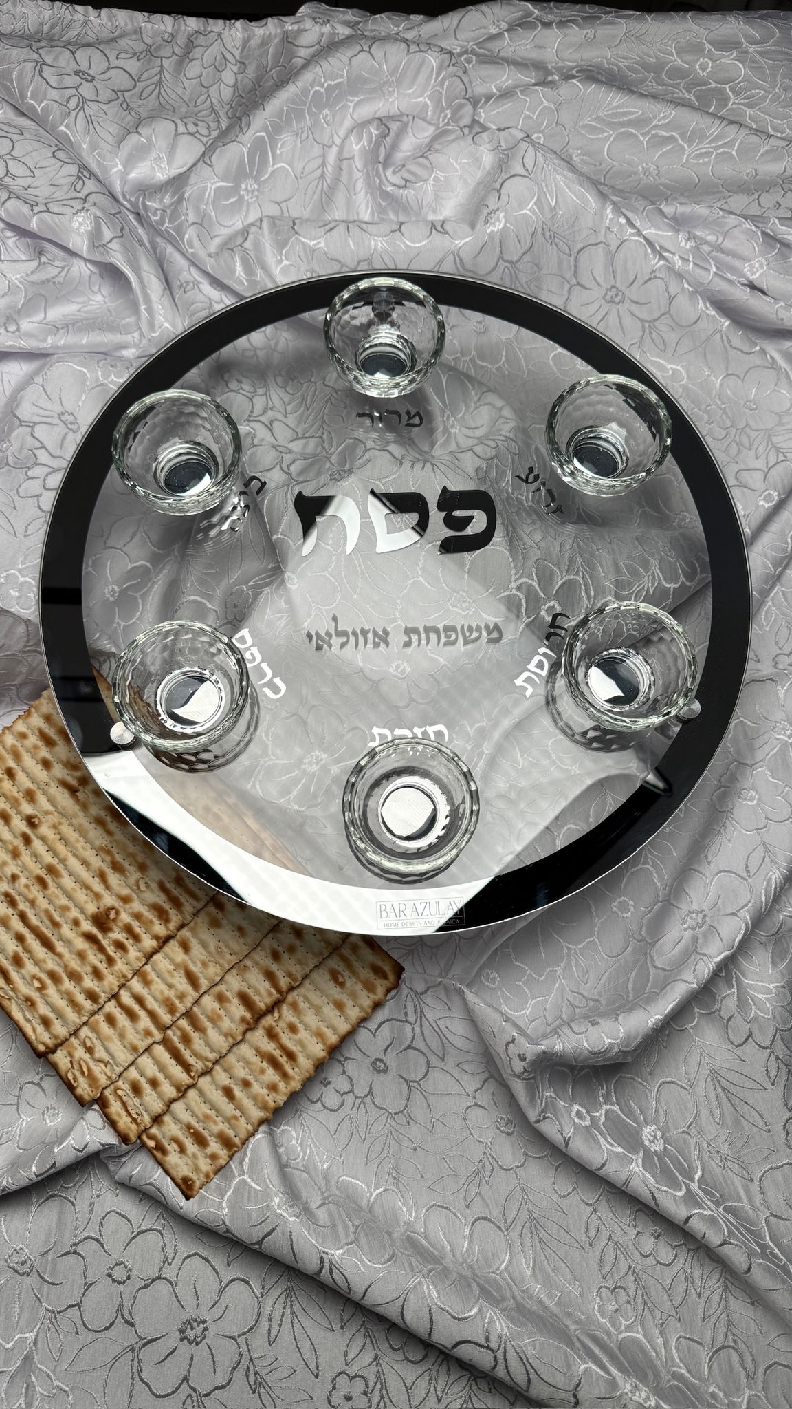 צלחת פסח זכוכית קריסטל כסוף