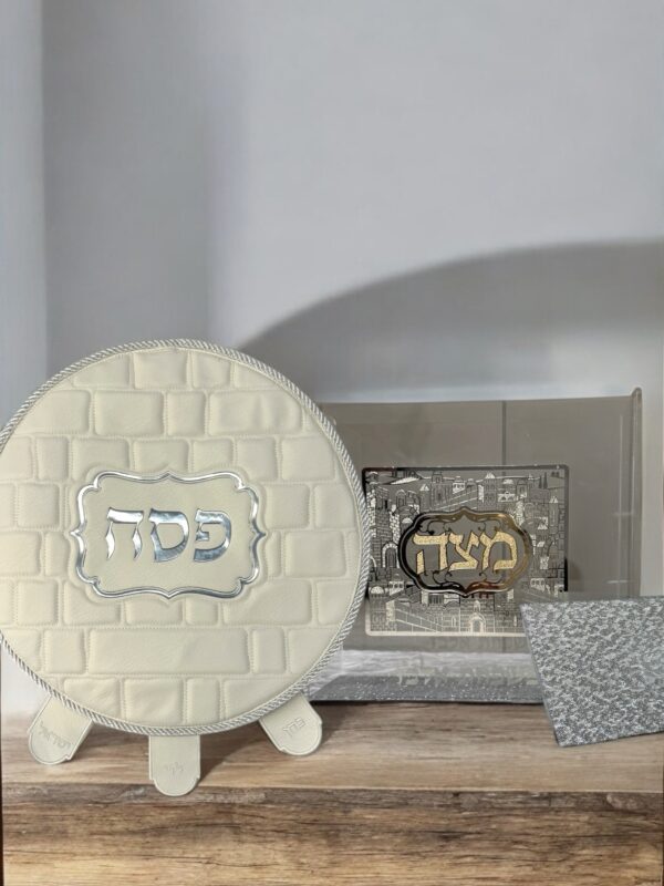 המחיר המקורי היה: ₪335.00.₪315.00המחיר הנוכחי הוא: ₪315.00.מארז סט כותל – כיסוי צלחת ומיכל מצה